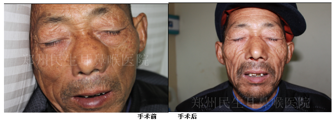 病情介绍:63岁的老杨长了一个像青蛙形状的鼻子,并出现鼻塞、流涕、睡觉张嘴呼吸等症状。说起他的鼻子,还得回到四年前,那时候老杨的鼻子就有点发堵,有时也有流涕等症状,发现里面长了个小肿块,当时候也没太当回事。去年,老杨感觉鼻腔内越来越堵,直到鼻内完全被堵死,严重影响到他的生活,这时老杨才觉得大事不妙,随后便到医院做了检查,医生确诊他患有鼻息肉,建议手术治疗。由于当地医院条件有限,在手术中出血量大,疼痛严重,不得已,手术在未完成的情况下草草结束。经过这次不的治疗,老杨鼻腔内的肿块越长越大,鼻背变宽,形成“蛙鼻”。今年,经过子女的一再劝导,老杨再次走进医院接受治疗,而这次选择了省内的一家三级耳鼻喉专科医院——郑州民生耳鼻喉医院。