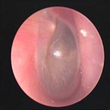 耳膜也称鼓膜,为一弹性灰白色半透明薄膜,介于外耳道与中耳腔之间一层半透明圆形的薄膜将外耳道与中耳隔开。