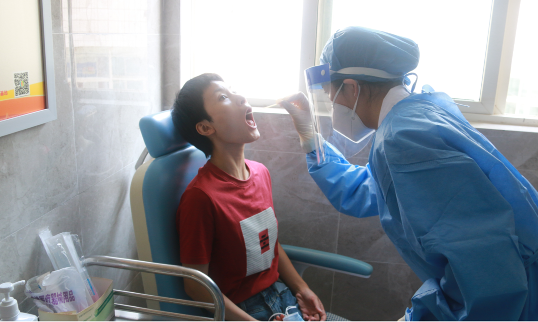 3、在采集口咽拭子时检测者头后仰,张口发出"啊"音,有助于暴露咽喉,采样过程无特殊不适,但部分敏感人员可能出现刺激性干咳、恶心、呕吐等症状,休息后即可缓解,受检者可配合采集人员尽量放松、保持深呼吸,大部分人员可避免不适;
