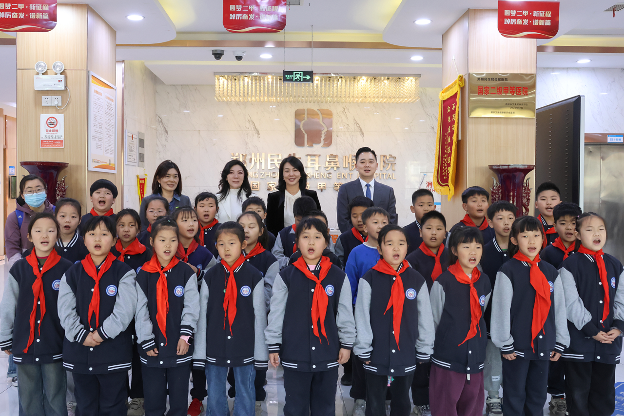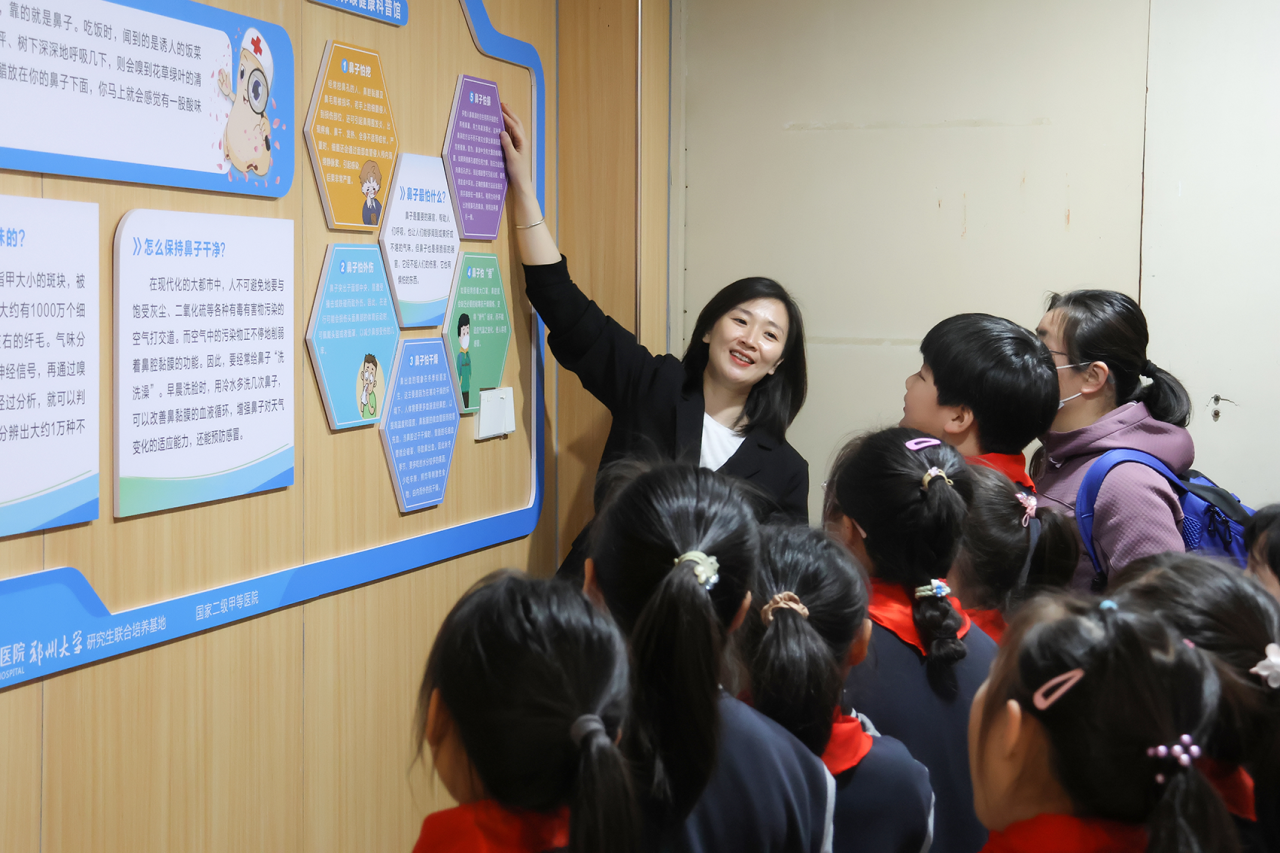 在此期间,二七区京广路小学的20余名学生,在郑州市人大代表、校长贾琳女士的引领下,怀揣着对知识的渴望,踏入科普馆,开启了一场关于耳鼻喉奥秘的探索之旅。