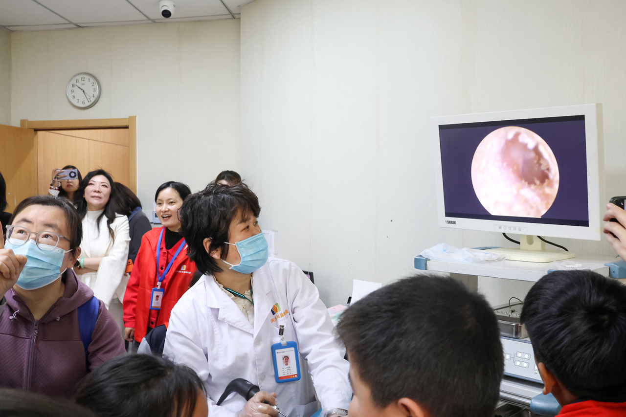 进入内窥镜体验区,孩子们通过内镜医生的“小镜头”,首次近距离观察到自己耳道和鼻腔内部结构,对身体的复杂构造感到惊叹不已:“原来我们的耳朵、鼻子内部这么复杂,这么美妙!”