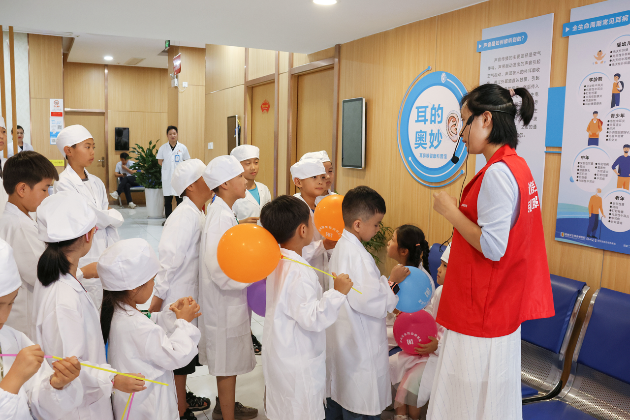 变身“小医生”、打卡耳鼻喉健康科普馆、学耳鼻喉健康知识——7月28日,郑州民生耳鼻喉医院迎来了一批特殊的“小客人”,20余名医务人员子女走进医院,开启了一场奇妙的“医学探秘”之旅,沉浸式体验父母的工作岗位,感受医学魅力。