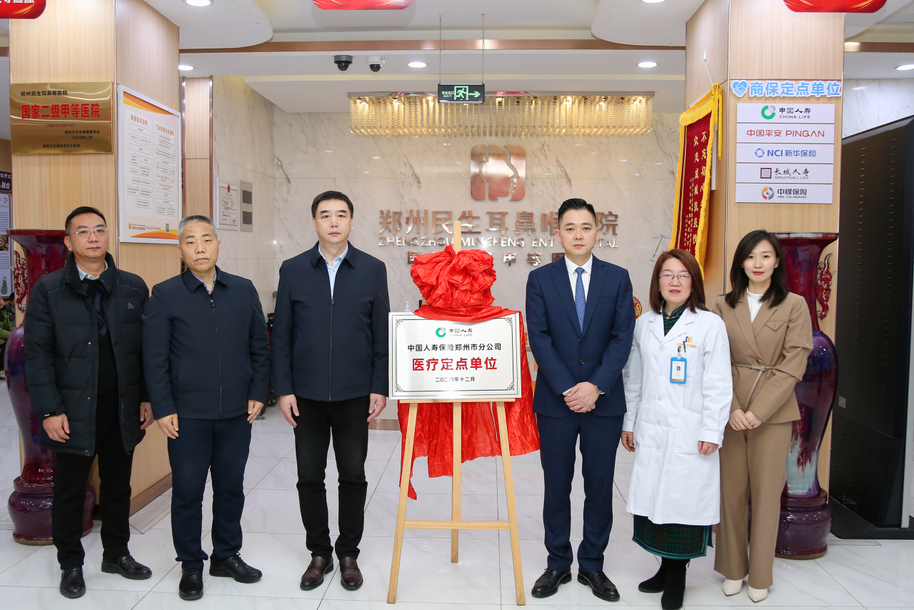2025年1月23日,中国人寿保险郑州市分公司与郑州民生耳鼻喉医院成功举行医疗定点单位签约揭牌仪式,标志着双方在健康保障领域开启全新合作篇章。