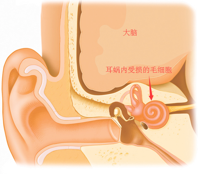 耳蜗是位于听器官内耳骨迷路的一个组成部分。耳蜗是一螺旋形骨管,绕蜗轴卷曲约两周半。螺旋器(Corti氏器)是感受声波刺激的听觉感受器,由支持细胞和毛细胞等组成,毛细胞为声波感受细胞,每个毛细胞均与神经纤维形成突触联系。如果毛细胞的缺失或损伤,声音就无法传导到大脑进行处理。