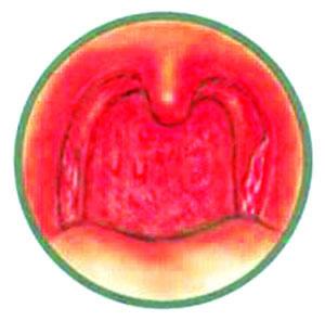 4、咽部充血呈暗红色,咽后壁可见淋巴慢性咽炎滤泡。