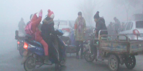 图为河南省郑州市一所小学门外,自发组成“浓雾护卫队”的家长们,在大雾中护送着孩子们进出校园。记者采访了家住学校附近的李女士,“三天两头就要带小孩去医院,不是鼻子不舒服就是嗓子不舒服”,离放学还有半个小时李女士早已等候在校门口,听到记者的询问,李女士说,现在全职在家照顾小孩,生怕去医院,去少说都得大几百。