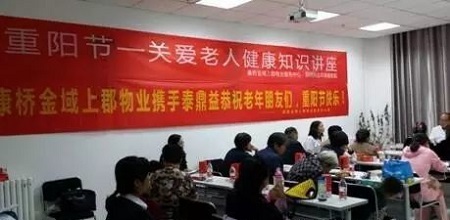 遍采茱萸,遥登高处,雁阵掠过晴朗高空。10月9日,恰逢重阳佳节,郑州民生耳鼻喉医院与相关部门合作,为金域上郡1号院的社区老年人举行了一次关爱健康知识讲座,向该社区老年人宣传如何进行自我健康管理。