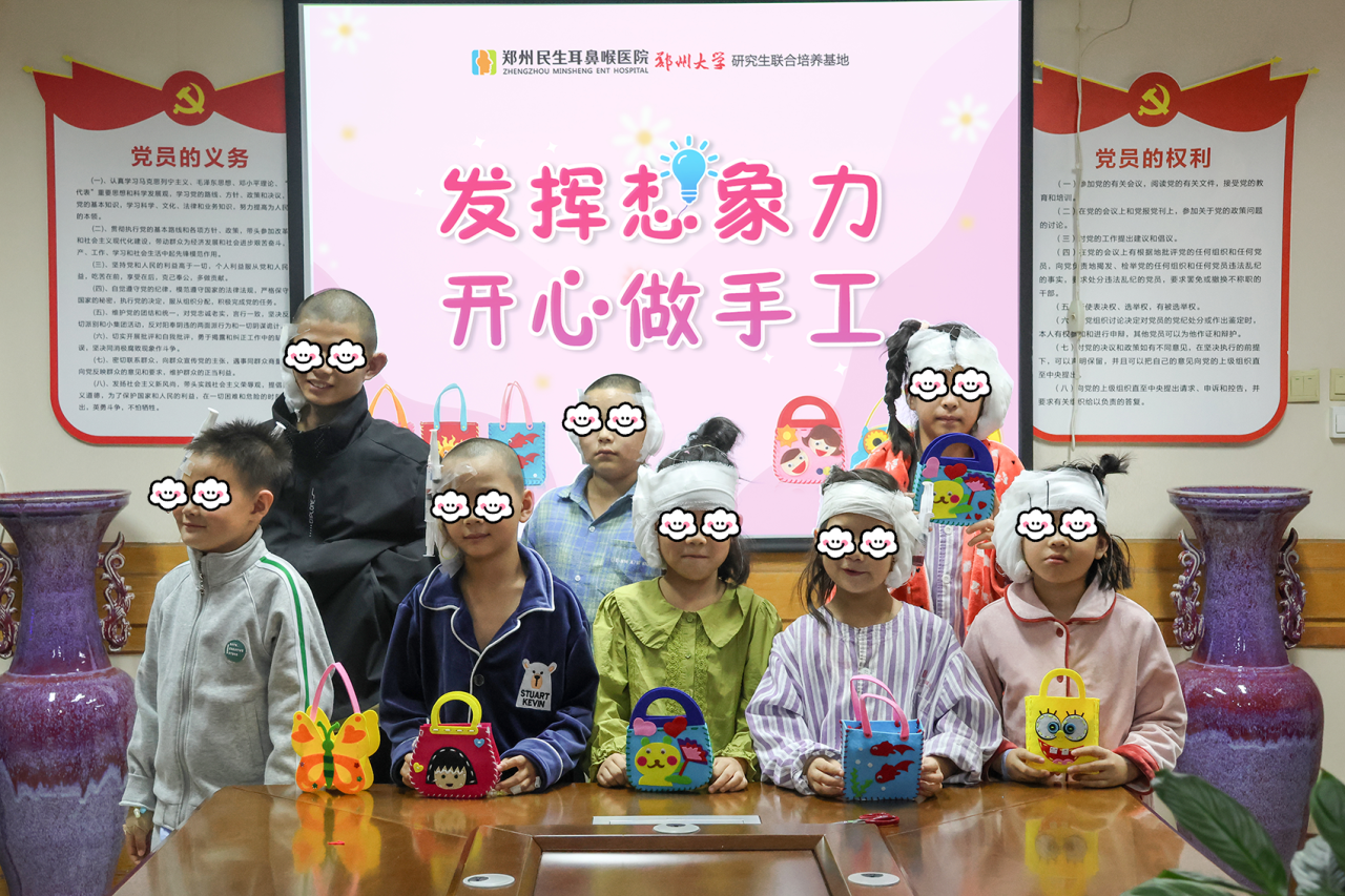尽管大多数患儿还在术后恢复期,却完全不影响他们“创作”的热情。一个个作品在亲子协作下“诞生”,一张张笑脸绽放开来,拥有“新”耳朵的宝贝们,即将开启属于他们的自信人生。