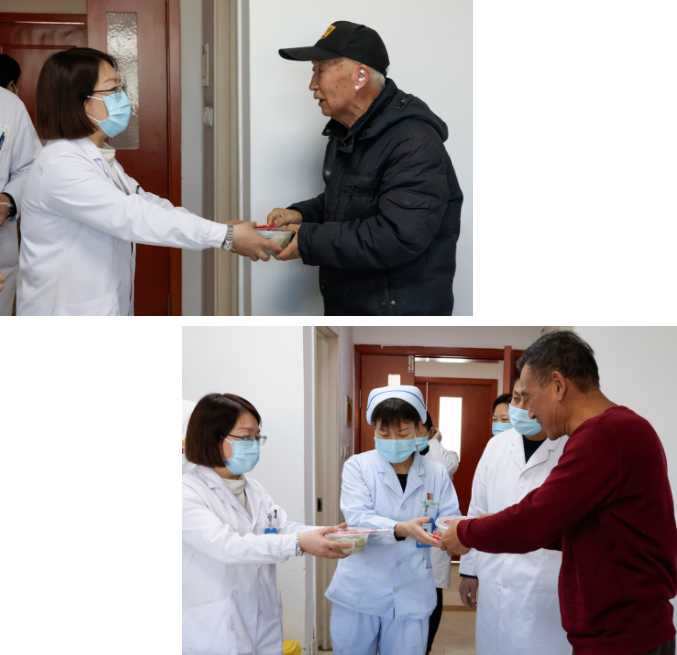 突聋患者陈先生说:“今天刚入院,没想到就能吃到医院送的饺子,真是太暖心了。”患者家属赵女士感动的说:“因为自己的母亲住院,只好带着孩子来医院陪母亲一起过节,感谢医院这么温暖,给我们都送来了饺子。”