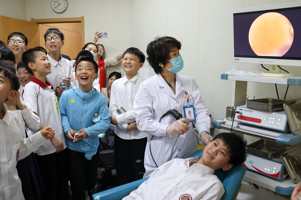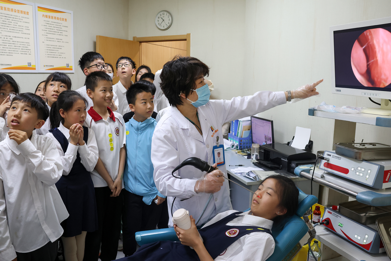 在内窥镜体验区,孩子们通过内镜医生的“小魔法镜”,第一次看到了自己耳道和鼻腔里的样子。他们惊讶地张大了嘴巴,纷纷表示:“原来我的耳朵里像迷宫一样,好神奇啊!”这种奇妙的体验,让小探险家们更加珍惜和爱护自己的身体。