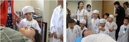 小朋友们一踏入医院大门,就被那洁白的“医生服”所吸引,他们迫不及待地换上装备,瞬间化身为精神抖擞的“小小耳鼻喉医生”,眼中闪烁着对未知世界的好奇与兴奋,仿佛即将踏上一场充满乐趣与挑战的医学探秘之旅。