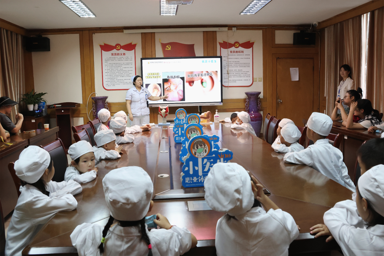 8月10日,郑州民生耳鼻喉医院携手郑州市青年联合会医药卫生界别组,成功举办了第25期“我是小医生”职业体验课。来自二七区淮河路街道绿云社区、人和路街道联合社区的30余名小朋友,在家长的陪伴下来到医院,开启了一场别开生面的职业探索之旅。