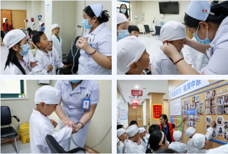 现场演示的正确止血方法和压舌板检查扁桃体技巧,让孩子们迅速掌握了知识要点,感受到了医疗工作的严谨与乐趣。