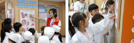 小朋友们来到了耳鼻喉健康科普馆——这座被二七区科协官方认证的、行业内独一无二的耳鼻喉科普研学基地,将所学应用于实际。