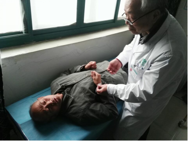 他在诊室内为卢大爷做了针灸穴位的治疗同时搭配其他中西医联合治疗。