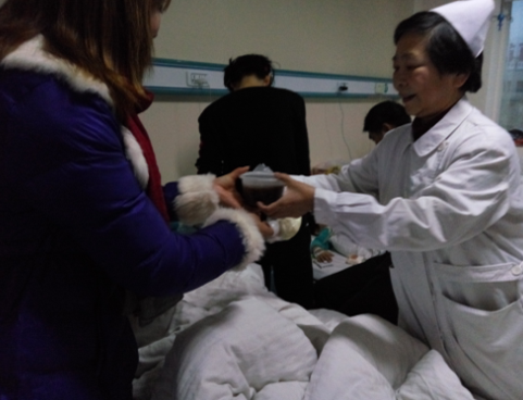 受到病人的赞扬,医院所有的工作人员也都非常欣慰,一碗粥表达了医院对患者节日的贴心服务和问候,更体现了医院与患者之间亲如一家的和谐氛围。