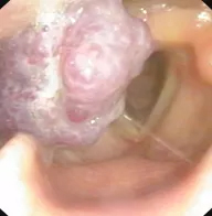 电子喉镜下右侧梨状窝紫红色新生物