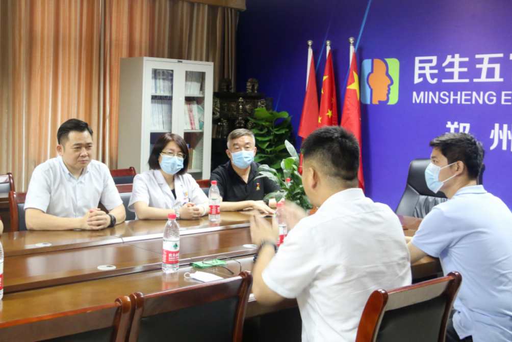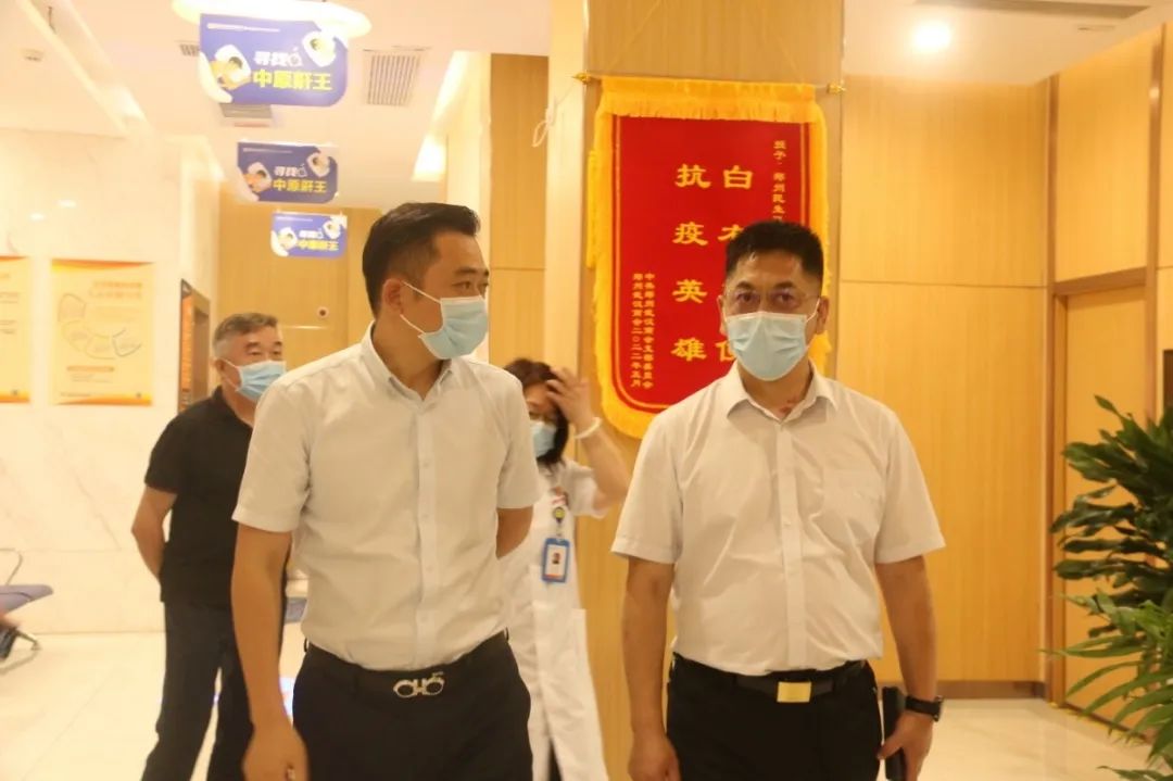 6月23日下午,水晶帘动微风起,满架蔷薇一院香。郑州市二七区蜜蜂张街道办事处党工委书记李国栋、党工委委员、武装部长吴岩、党建办主任张珏一行三人莅临我院视察指导工作,院长禹爽引导参观医院并主持座谈会,医疗院长钱江平、业务院长王高宏、行政部主任石子璐全程陪同并参会。