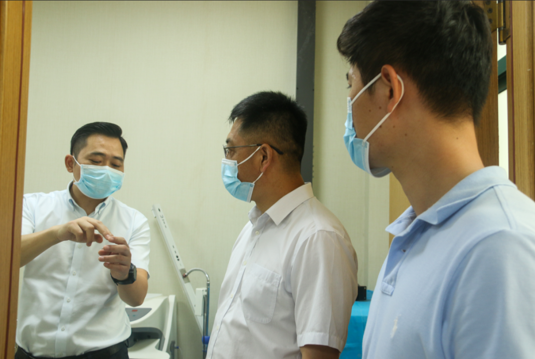 参观过程中,李书记认真听取了禹爽院长关于我院疫情防控、人才培养、业务开展、党建工作等情况的汇报,对自疫情爆发以来,我院全体医护人员在支援全民核酸采集工作上做出的无私奉献给予了高度评价。