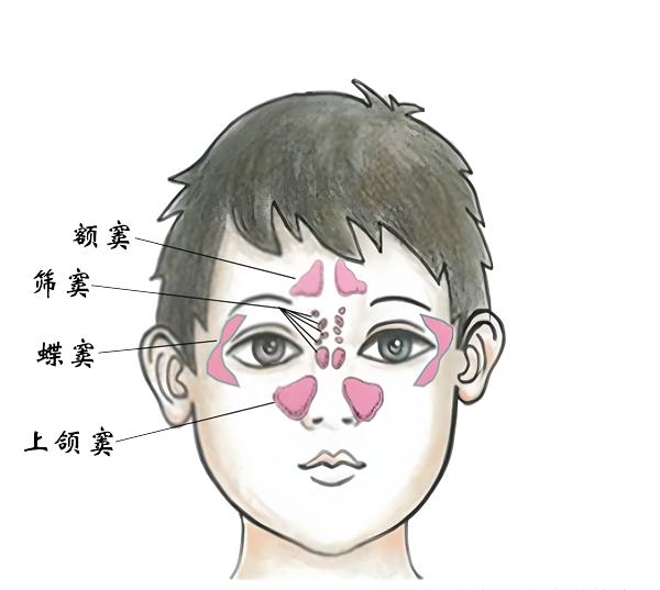 鼻窦位于头面部,是鼻腔周围颅骨中的含气空腔,有开口与鼻腔相通。一共有4组,分别是额窦、筛窦、上颌窦、蝶窦,左右各一组。鼻窦具有辅助鼻腔调节空气的温湿度、共鸣、保护脑部等作用。