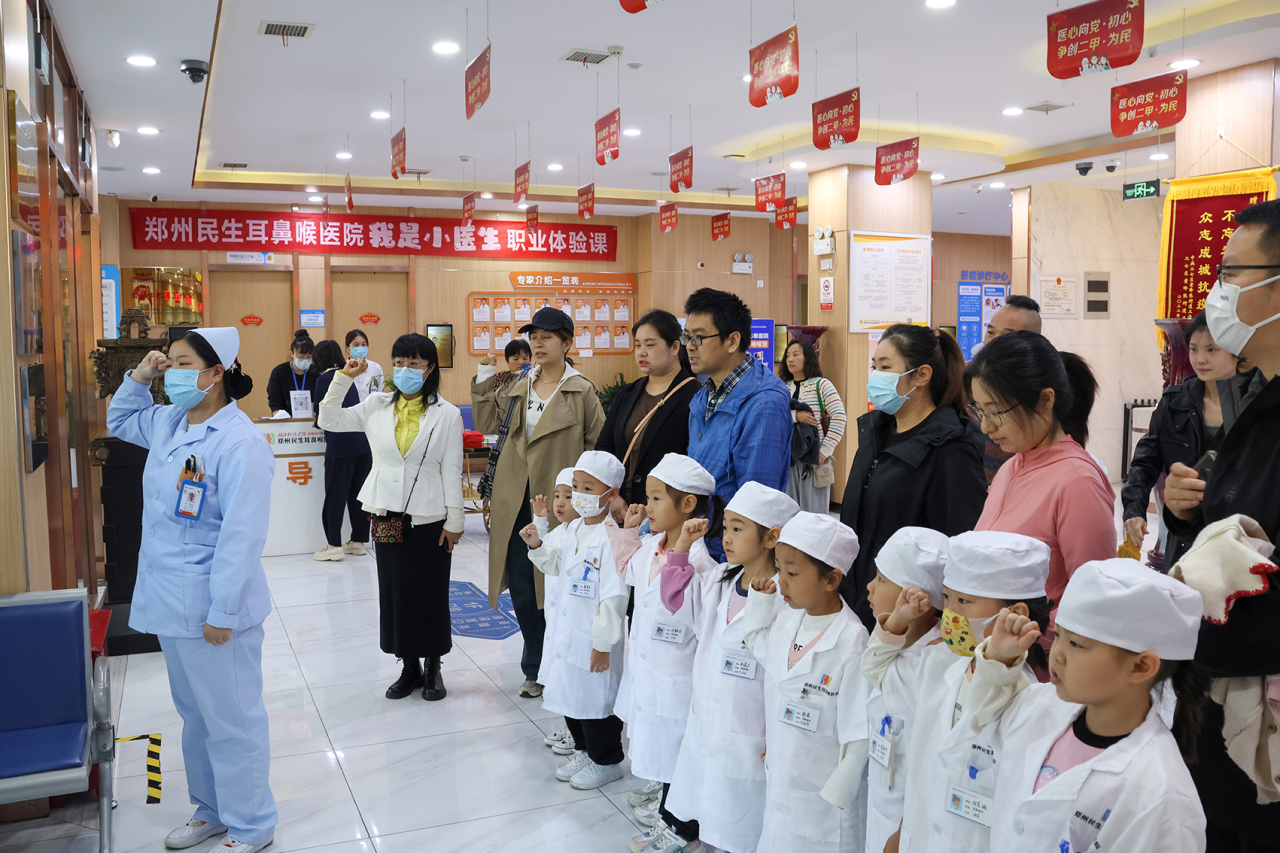 用爱心,做善事”,郑州民生耳鼻喉医院通过和周边社区、幼儿园、小学联合定期举行职业体验活动,让孩子和家长在真实的“医院场景下”,亲自体验、亲自参观,从而深刻认识到耳鼻喉健康的重要性。