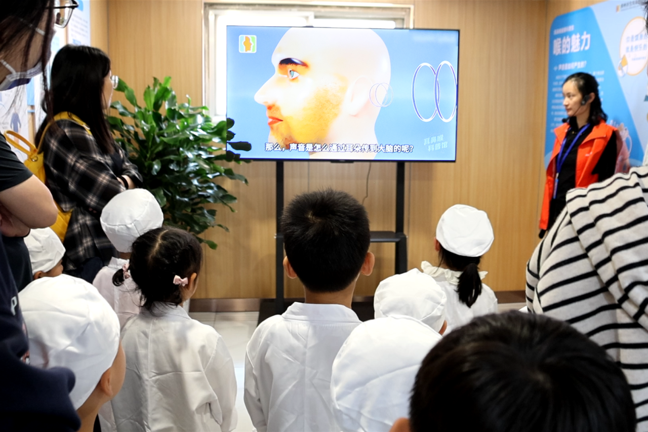在工作人员的带领下,孩子们走进充满科技感的“耳鼻喉健康科普馆”——一个集医学科普与专业体验于一体的互动空间,开启了一段沉浸式的探索之旅:
