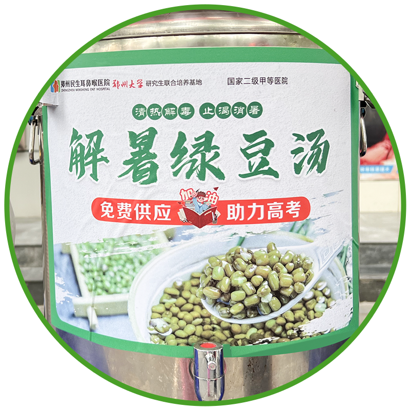 清晨七点,医院的志愿者们就开始了忙碌的准备工作。遮阳帐篷下,一桶桶精心熬制的绿豆汤散发着清甜香气,为即将面对挑战的考生们送去一丝丝清凉。