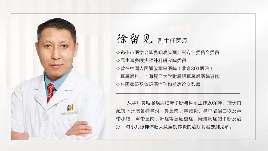郑州民生耳鼻喉医院门诊部徐留见主任为您详细解答。