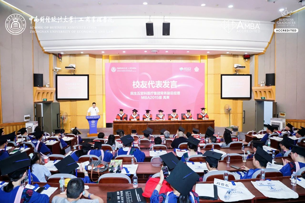 2025年7月5日上午,中南财经政法大学工商管理学院(MBA教育中心)2025年MBA/EMBA毕业典礼暨学位授予仪式在首义校区文汇楼报告厅隆重举行。工商管理学院院长吴海涛教授、党委书记余小朋等校院领导出席典礼,MBA教育中心全体老师、优秀授课教师代表以及2025届MBA、EMBA毕业生齐聚一堂,共同见证这一高光时刻。