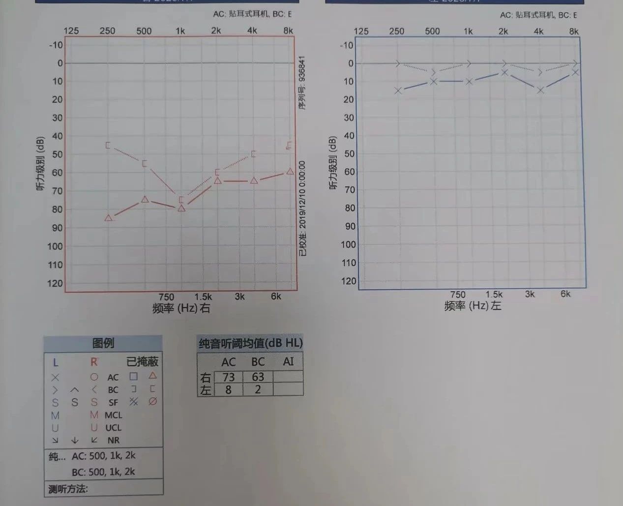 门诊部徐留见主任听完患者的描述,马上为李女士安排听力测试,结果显示右耳中重度陡降式感音神经性聋。