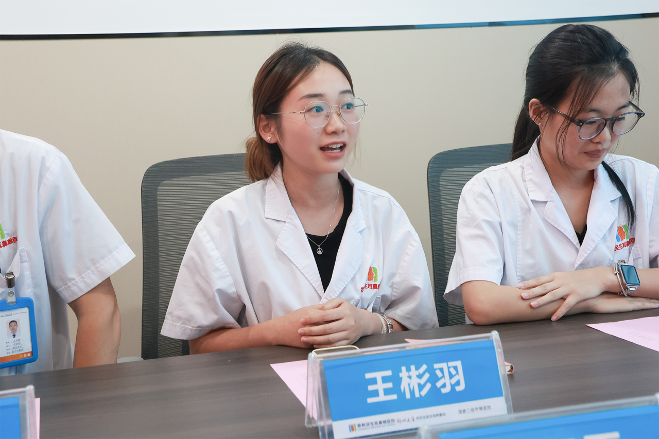 来自湖北科技学院的见习生王彬羽代表发言。她表示,这次能够在郑州民生耳鼻喉医院实地学习,是一次“从课本走进真实医学世界”的难得机会。在未来的学习中,她将严守医院各项制度,虚心求教、认真观察、努力完成每一项学习任务,争取不负老师的教诲、不负这段来之不易的成长经历。