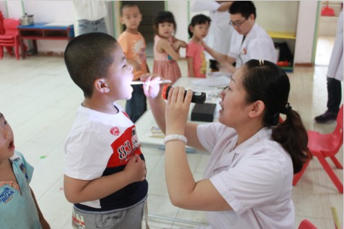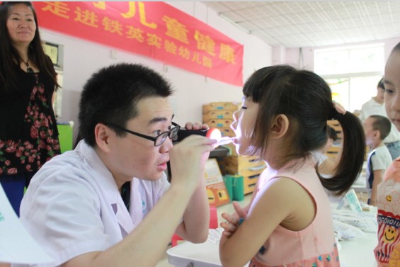本次义诊共为园内150多个儿童进行了检查,发现当中有不少儿童有不同程度扁桃体炎和慢性鼻炎。慢性鼻炎是鼻黏膜及粘膜下层的慢性炎症,表现为充血或水肿,患者经常会出现鼻塞、流清水涕、鼻痒、咽部不适、咳嗽等症状。慢性鼻炎患者往往睡觉时打呼噜不止,影响睡眠,从而损伤记忆力。此外如果慢性鼻炎长期存在,还会引发耳鼻喉其他部位的病变,严重者还会引发鼻咽的发生。