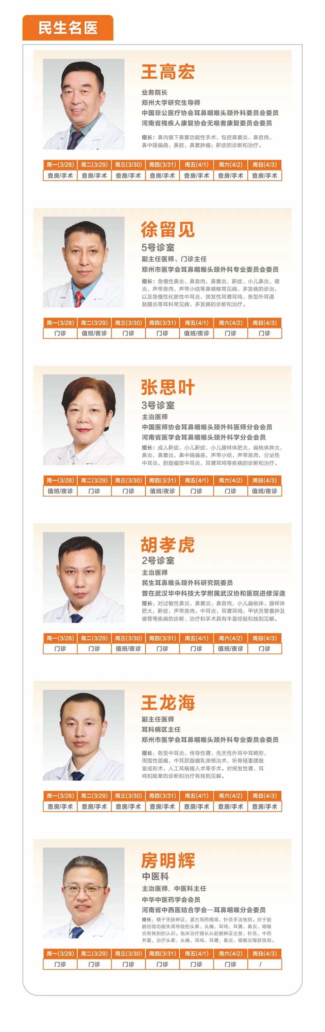 我院3月28日-4月3日医师排班表