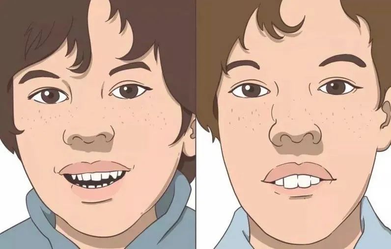 由于气道变窄,患儿会觉得用鼻子呼吸不畅,便习惯性的张口呼吸。长期张口呼吸,致使口腔鼻腔气压改变,面骨发育发生障碍,下颌后缩,腭骨高拱,牙列不齐,门牙突出,上唇短厚,缺乏表情,出现所谓“腺样体面容”。