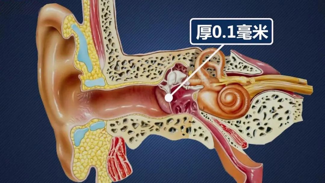 鼓膜是中耳与外耳间的一个屏障,厚度只有0.1毫米,像皮肤一样具有一定的弹性和韧性,但外力、压力、感染等可以导致其破裂。