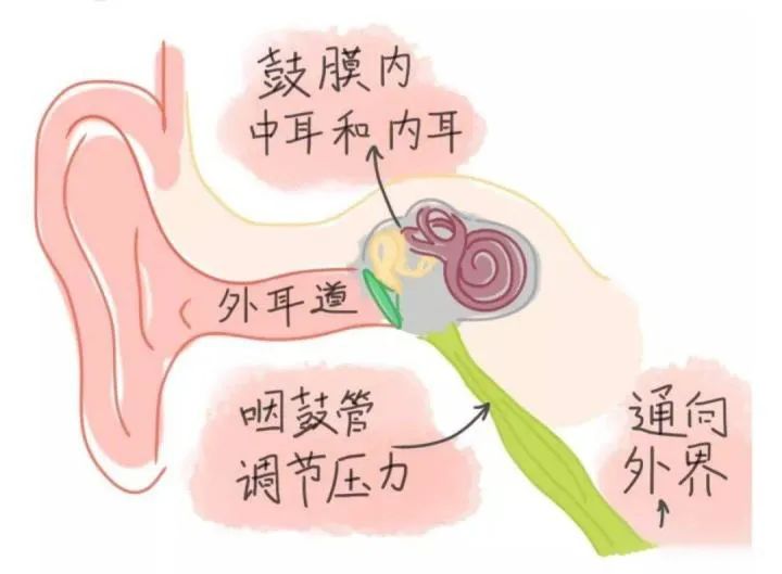 耳朵里的咽鼓管的开放闭合,能及时调节内外耳道的气压平衡。如果咽鼓管受到损伤,不能及时调节气压平衡,那么,在气压突然变化时,比如高台跳水或潜水,耳内负压的情况下,鼓膜会因被压力所吸导致穿孔。