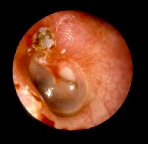 还有一种胆脂瘤属于后天性的,也叫续发性胆脂瘤性,常见的是慢性化脓性中耳炎续发的慢性化脓性中耳炎(胆脂瘤型),这是由于中耳炎造成鼓膜边缘性或松弛部穿孔,外耳道的上皮细胞长入中耳乳突腔,然后上皮脱落、堆集而成。